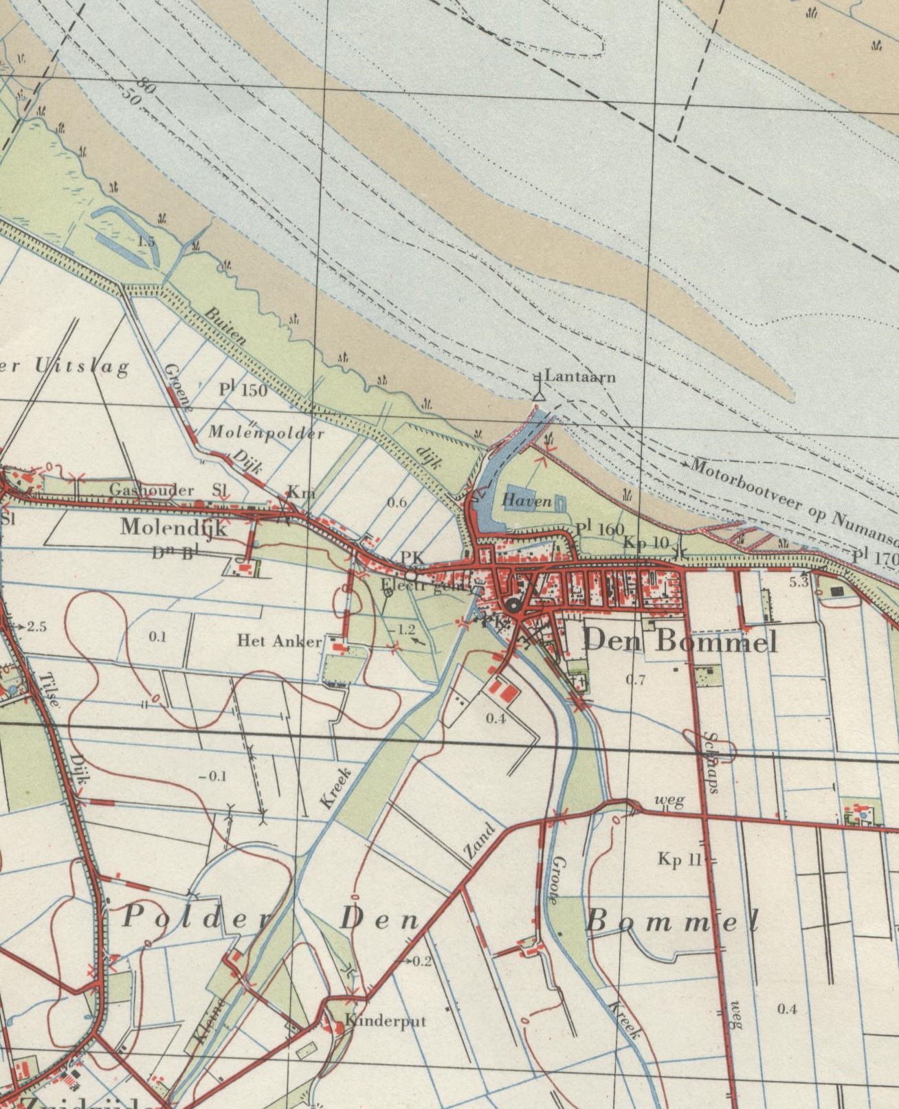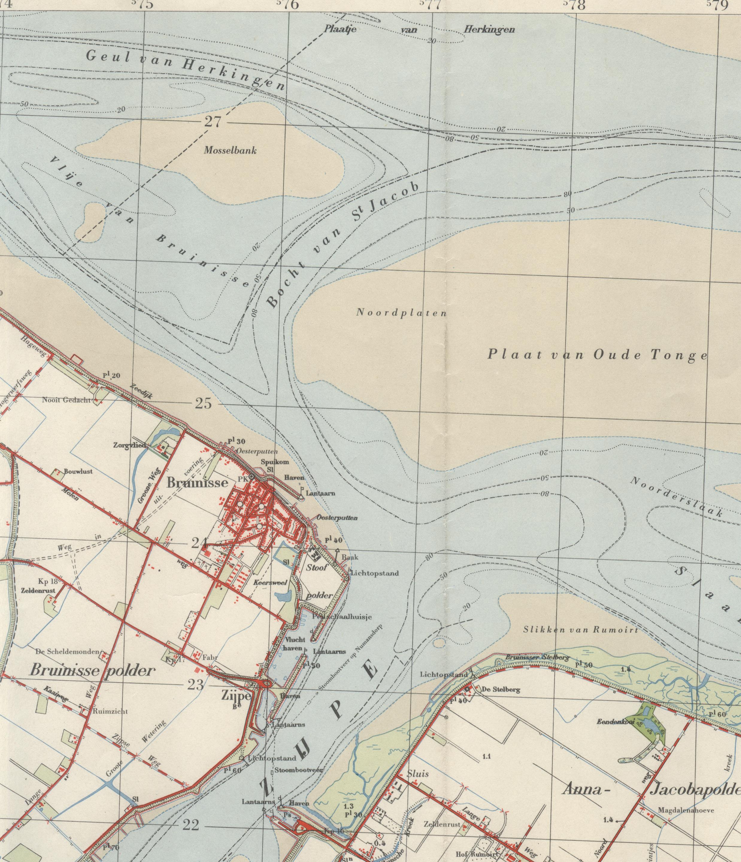 Fragmenten uit de kaarten 42 B en 43 C , Middelharnis en Bruinisse. (Uitgave 1959)