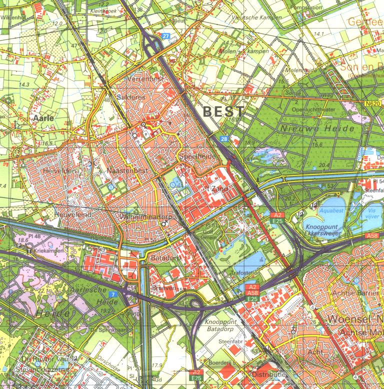 Fragment van kaart 57 Oost, uitgegeven in 1984. Op de kaart wordt nu