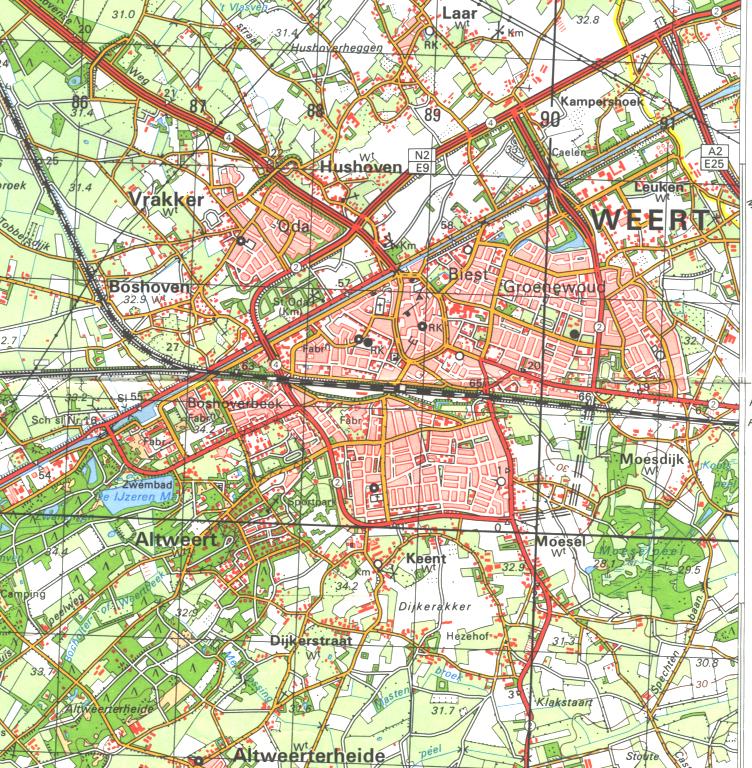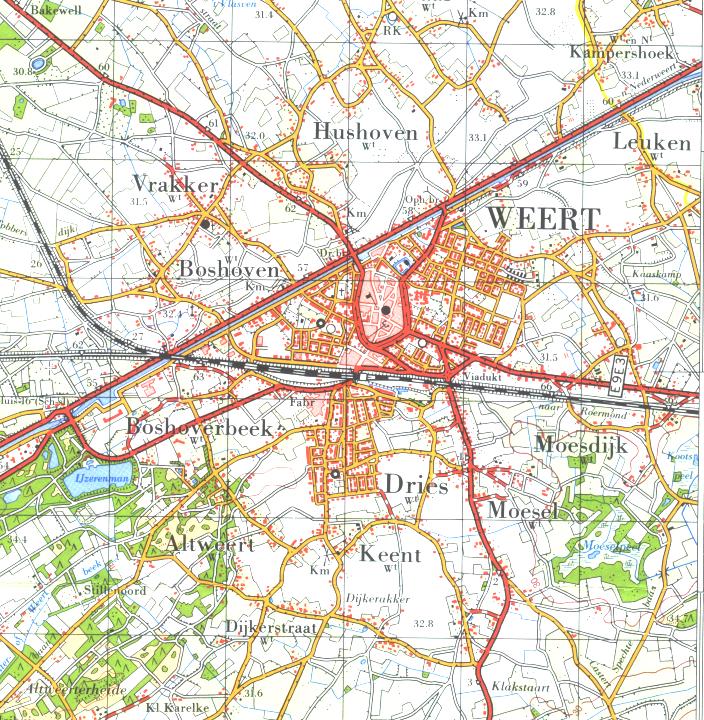 jaren na 1945. Daarbij zijn vijf kaarten van Weert en directe omgeving opgenomen