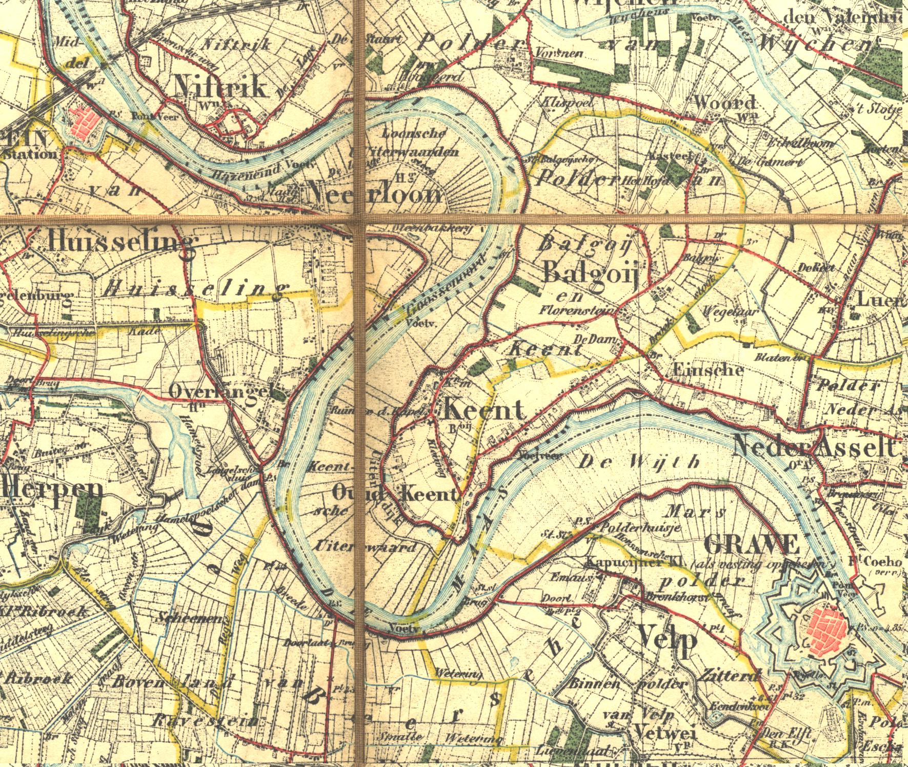 De Maas nog slingerend tussen Grave en Ravenstein 1879