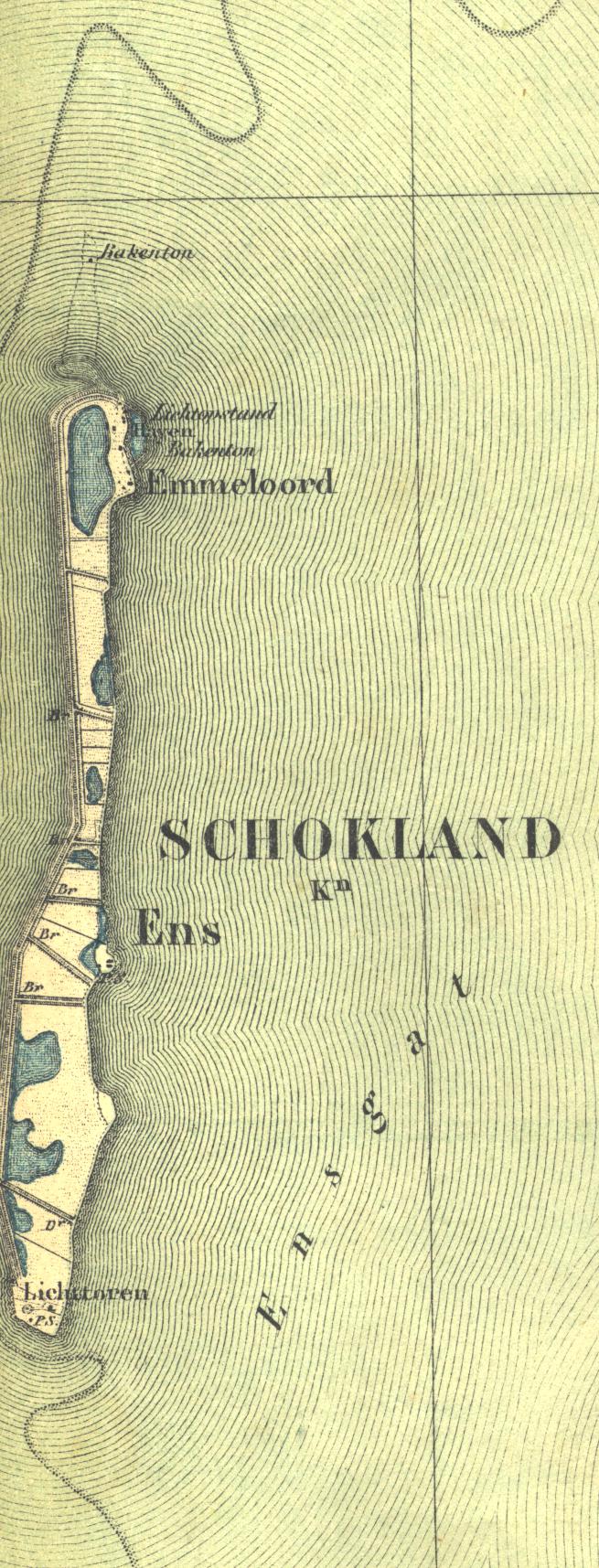 Op de oude kaarten, van voor 1900, wordt het water met kleine lijntjes ingetekend, iets later