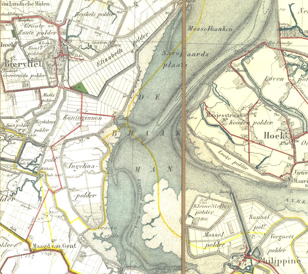Hieronder een fragment van de kaart van Neuzen, van het gebied "de