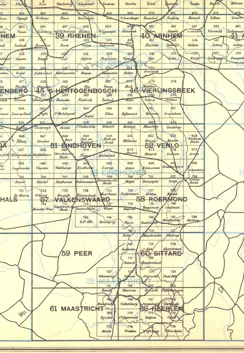 als beginpunt voor de indeling van de oude 1:25.000 kaartjes (de
