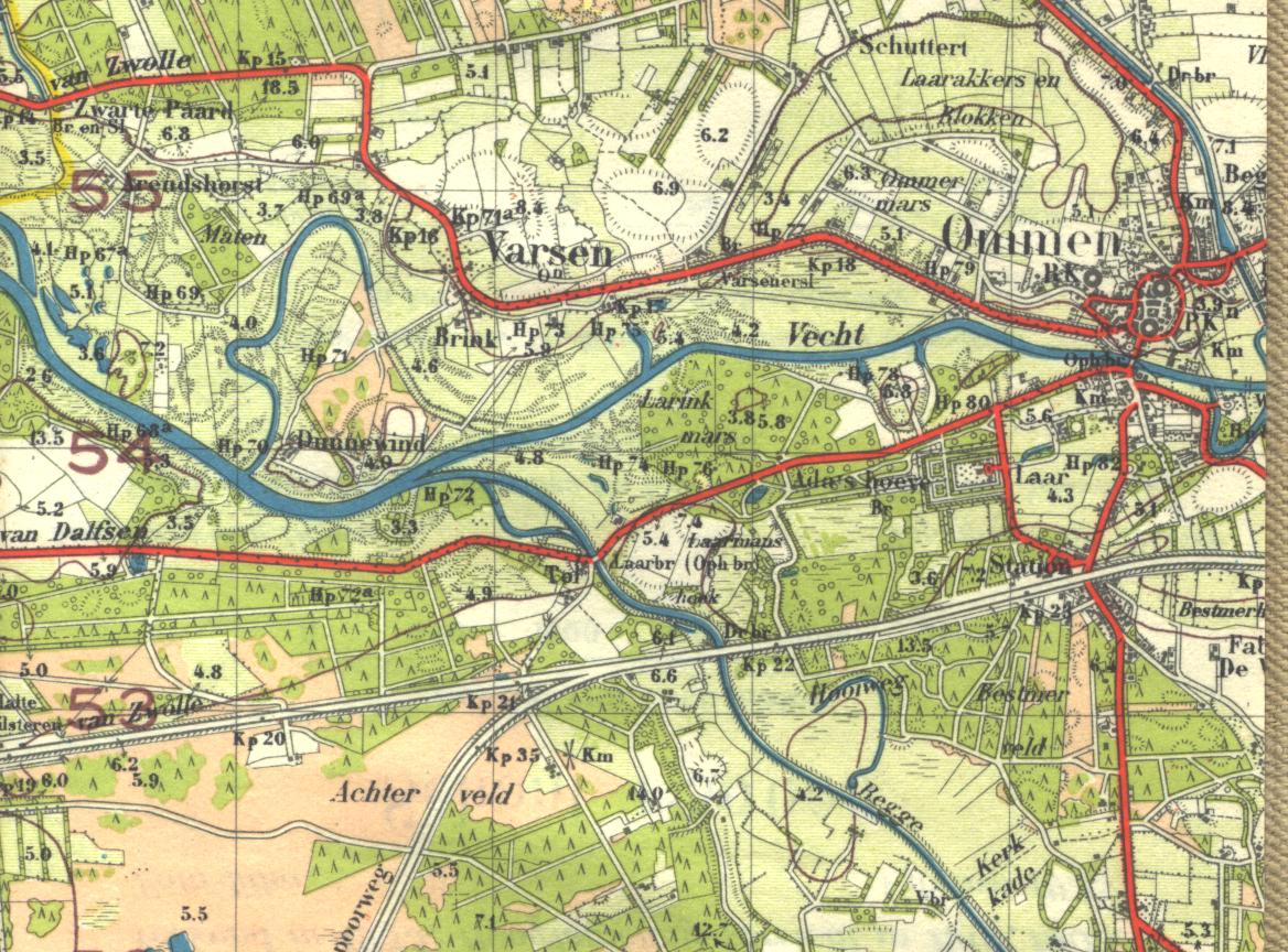 gebied van de samenstroming van de Regge en de Vecht ten westen van Ommen. Het verschil in kleurstelling