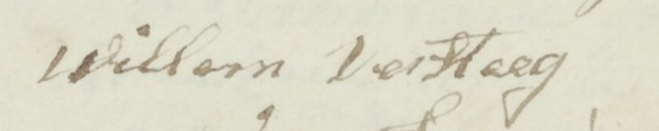 Wilhelmus Versteegh 1761-1817 Willem is geboren 30 januari 1761 in Rhenoy (waarschijnlijk Gellicum maar gedoopt in Rhenoy) en in ongeveer 1817 overleden, ca. 56 jaar oud. Zijn precieze sterfdatum en jaar is niet bekend. Zijn moeder was Joanna Willemse van Gameren, * 20-04-1733 en † 13-01-1784 in Rhenoy, 51 jaar oud. De vader van Willem was Herbert Lamberts Versteegh, * 1727 en † 12-02-1814. In de jaren 1797 tot 1800 komen we Willem tegen als commissaris voor huwelijkse zaken in Gellicum. Dan ondertekent hij de stukken met Willem Versteeg (zonder h) Willem trouwt zelf pas in 1808 als reeds behoorlijk oudere heer van 47 jaar met een jonge dame van 24 jaar. Het is wel goed dat hij dat toen nog gedaan heeft, want anders was er geen Gellicumse tak met de naam Versteegh geweest. Willem Versteegh trouwde met Allegonda Struijken (Gon). Aldegonda werd gedoopt op 29-02-1784 en is gestorven op 01-09-1830 in de gemeente Deil op de leeftijd van 46 jaar. Allegonda kwam uit Varik. Ze was de dochter van Theodorus Struijken en Adriana Bock (of: de Bok). De naam Aldegonda wordt verschillend geschreven: bij haar doop heette zij Alegunda, genoemd naar haar tante (tevens getuige bij haar doop) die Alegundis heette. Haar moeder Adriana kwam uit Neerijnen. Allegonda was familie van de familie Struijken die later in Gellicum woonde. Zie daarvoor de aparte pagina Struijken . Willem en Gon trouwden op 7 augustus 1808 in de Rooms Katholieke kerk van Gellicum. Dat kon toen weer. Met de komst van de Fransen in 1795 kwam er een eind aan het monopolie van de gereformeerden. In Gellicum kregen de katholieken hun kerk terug. Dus Willem en Gon konden daar in de kerk trouwen. Willem was toen 47 jaar en Aldegonda 24 jaar. Ze zijn beiden niet zo oud geworden. Na de dood van Willem in 1817 bleef Gon achter met vier jonge kinderen. Haar jongste kind overleed daarna in 1820 op vier jarige leeftijd. Het zal niet gemakkelijk zijn geweest. Zij stierf al vrij vroeg in 1830, 46 jaar werd ze. Toen was haar oudste zoon 21 en er waren er nog twee minderjarige kinderen. BIj hun trouwen zien we bij hen wat andere namen: Wilhelmus Herberts en Hildegonda Struijke Uit dit huwelijk zijn de volgende kinderen bekend. 1-Herbert Antonie Versteegh (Herbert) is geb.13-06-1809 in Deil (Gellicum). Hij stierf 12-09-1894 in Kevelaer. Herbert deed van alles maar was soms dagloner, dan weer landman. Op 10 september 1830, nadat zijn moeder was overleden wordt Herbert voogd over zijn broer Lambert (17) en zijn zus Theodora (19). De andere voogd is Reinier Struike, oom van de kinderen. 2-Theodora Geertruida Versteegh (Dirkje) is gedoopt op 10 dec. 1810 in Gellicum. Ze stierf op 14 november 1881. Dirkje trouwde met Jan van Beest (* 05-09-1797 en † 29-07-1867), zoon van Willem van Beest en Cornelia Willems van Gameren op 24 mei 1834. Het gezin van Jan van Beest en Dirkje Versteegh is voor Herbert Versteegh, haar broer, heel belangrijk geweest. Lange tijd vormden zij een gezamenlijk huishouden. Herbert trouwde pas op 11 november 1850. Herbert was toen 41 jaar. Tot het huishouden van Dirkje en Jan hoorde ook jarenlang een veel oudere mevrouw Geertrui Struijke, een tante van Dirkje. Zij stierf op 22-03-1842.
