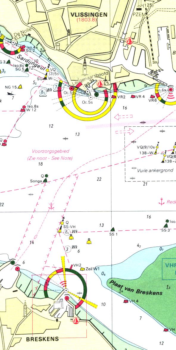 1989. 9 kaarten. Detail van hydografische kaart blad