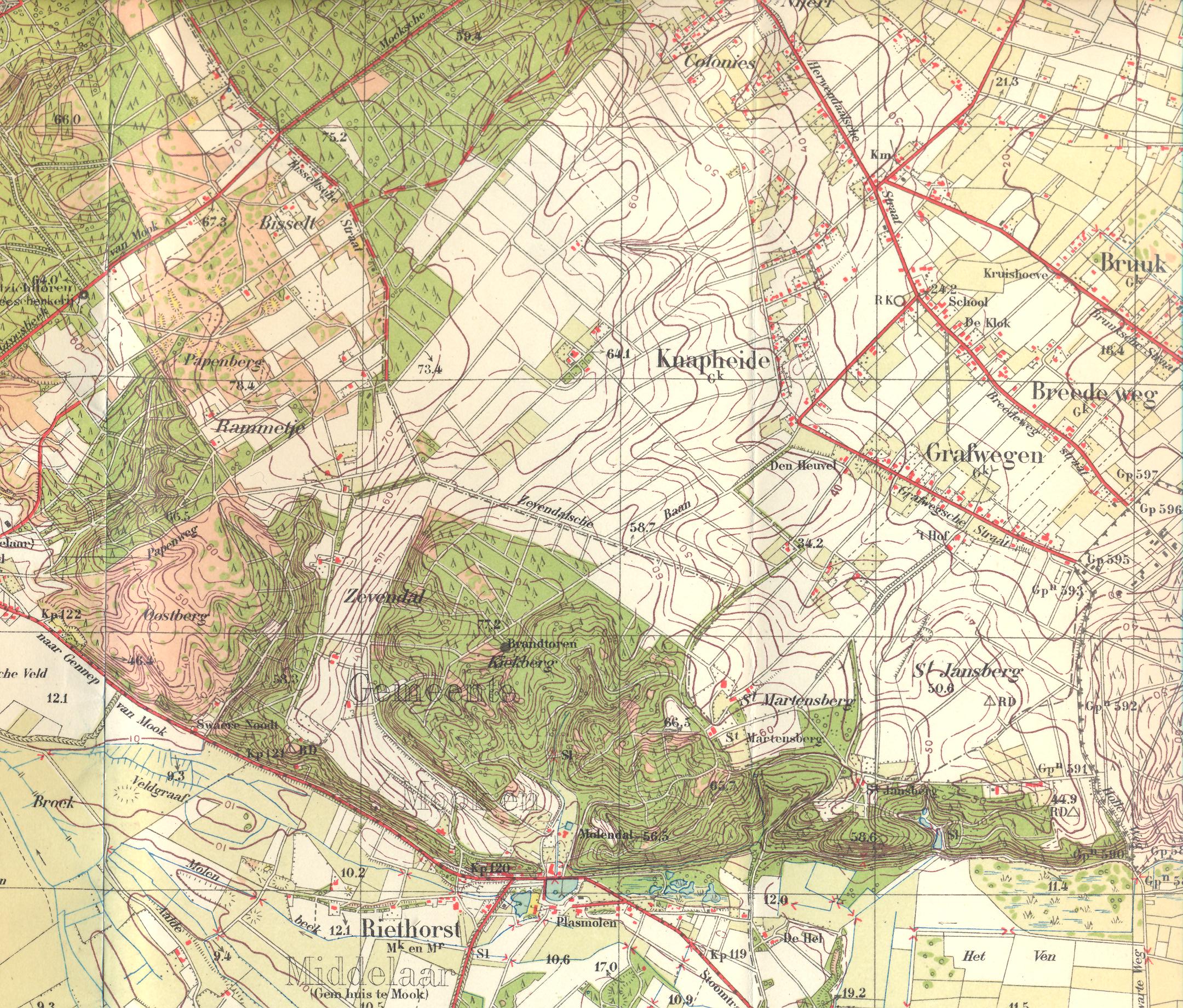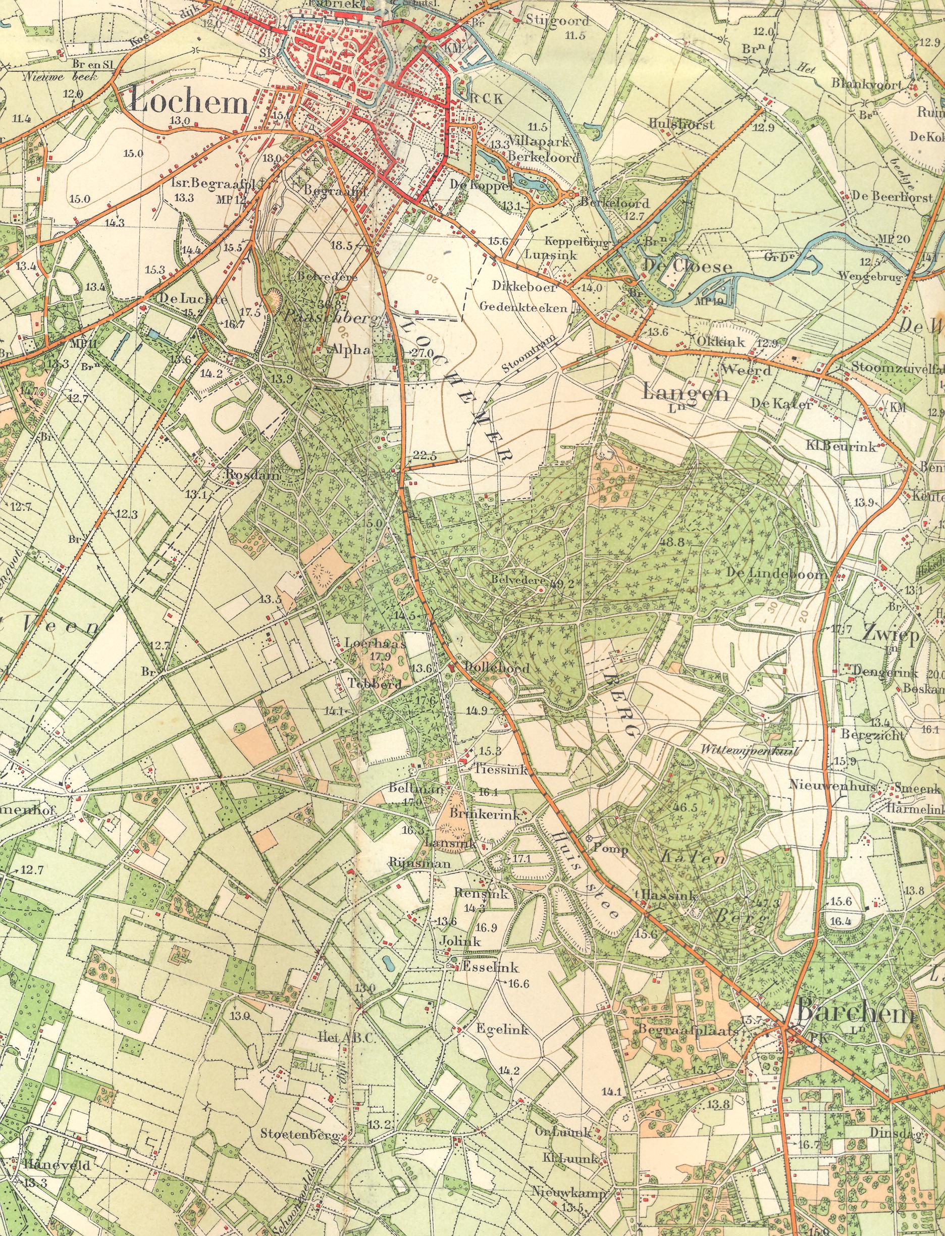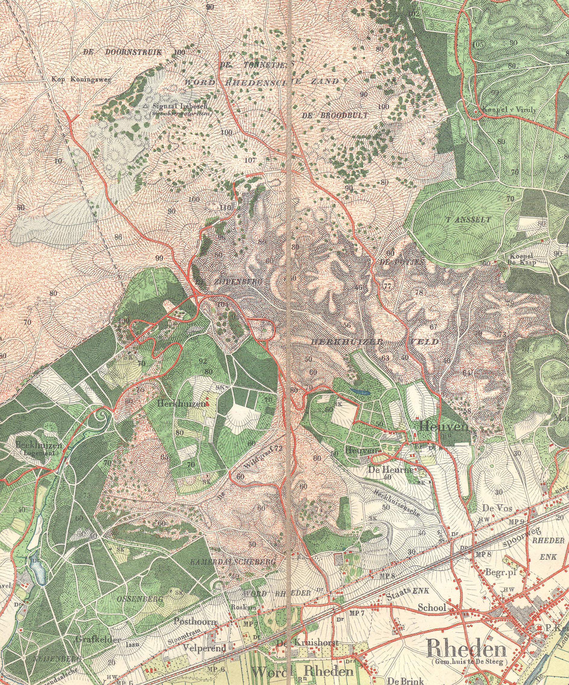 In 2007 verscheen het boekje "De mooiste bergwandelingen van Nederland" van "Routewerk" i.s.m. "Gegarandeerd onregelmatig". Het boekje is verkrijgbaar bij de (gespecialiseerde) boekhandel, VVV- en ANWB-kantoren, of te bestellen bij de uitgeverij "Gegarandeerd Onregelmatig", Stationsweg 1, 7491 CE Delden, tel: 074 – 2506502. In het boekje staan 13 routebeschrijvingen met recente topografische kaartjes. Voor degenen die het interessant vinden om het huidige landschap te vergelijken met het vroegere landschap, heb ik een of twee scans gemaakt van dezelfde wandelgebieden, maar dan van kaarten die ca. 70 tot 110 jaar ouder zijn. De meeste kaarten zijn van de schaal van 1:25.000. Enkele van een schaal van 1:50.000. Deze scans treft u hieronder aan in de volgorde en met de benamingen die ook in het boekje gebruikt worden. Als u de scans aanklikt krijgt u een veel grotere en gedetailleerde kaart.