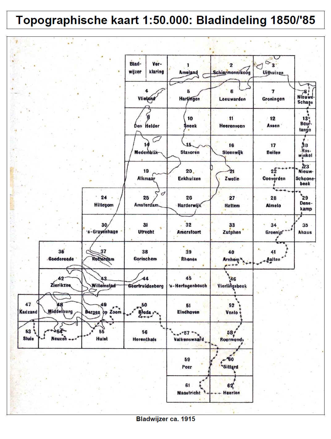 Topographische kaart 1:50.000: Bladindeling 1850/'85 A. BLADINDELING 1850/'85 B. BLADINDELING 1967-1990
