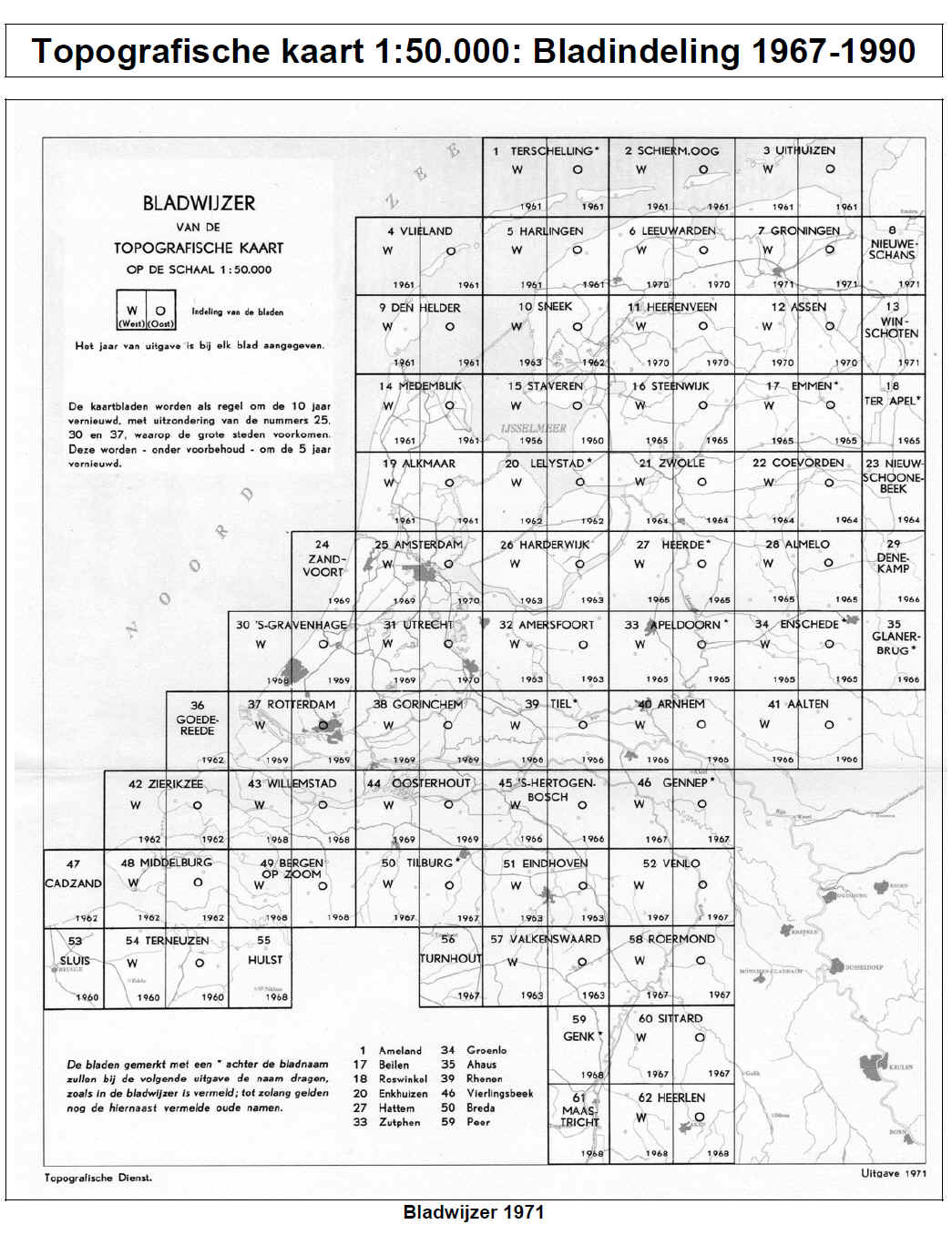 Topografische kaart 1:50.000: Bladindeling 1967-1990 Bladwijzer 1971 3.A+B. Bladindeling 1850-'85 + '67-'90 bij TABELLEN uitgavejaren.doc - mgroverman@freeler.nl - bijgewerkt 22-03-2009 2 |